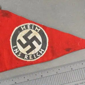 RARE Original Third Reich Era German NSDAP (Nazi Party) HEIM INS REICH Cloth Parade Pennant Type Flag Brought Home By A U.S. Veteran Certified