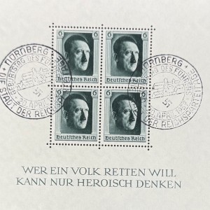A Very Nice Adolf Hitler Block Plate Third Reich Era Stamps Stamped Nuremberg Certified