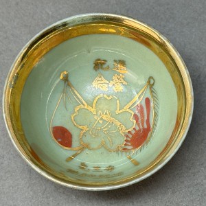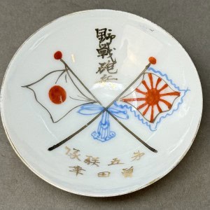 Original WWII Japanese Patriotic Saki Cup With Rising Sun Flag And Kanji Certified By The Gettysburg Museum Of History