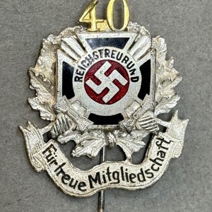 Scarce Original Third Reich Period German Veterans Organization 40 Year Membership Reichstreubund Lapel Badge Certified