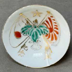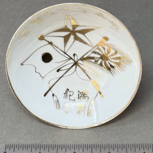Original WWII Japanese Patriotic Saki Cup 1939 GOLD FLAGS Certified By The Gettysburg Museum Of History