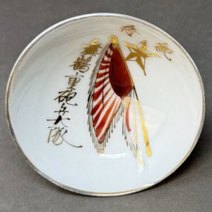 Original WWII Japanese Patriotic Saki Cup With Rising Sun Flag And Kanji Certified By The Gettysburg Museum Of History